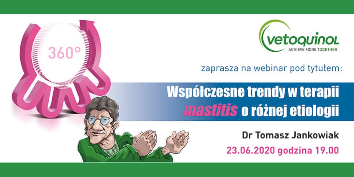 Jest nam niezmiernie miło zaprosić wszystkich lekarzy weterynarii na webinar z Dr Tomaszem Jankowiakiem pt.: "Współczesne trendy w terapii mastitis o różnej etiologii".